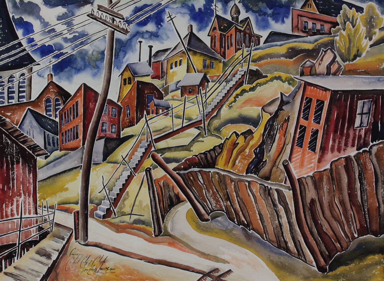 Photo: Marcia Ward / the Image Maker Denver. Eve Drewelowe, Crosses, Central City Colorado, 1940. Watercolor on paper, 22 x 30 in. Robert G. Lewis Collection. Courtesy of School of Art and Art History, University of Iowa.