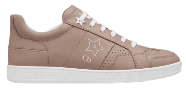 Christian Dior Star Sneakers in nude calfskin with white ‘CD’ and ‘Christian Dior PARIS’ signature and white star detail.