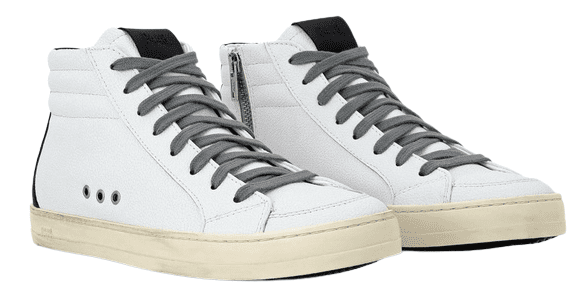 White and black high-tops made of sustainable materials.