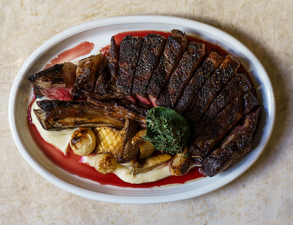 Signature menu items include handmade pasta such as the agnolotti with a three-cheese blend and sweet corn and Spaghetti alla Chitarra with Wagyu Bolognese. Other favorite dishes include a 24-day dry-aged veal tomahawk with mole negro and wood-fired branzino. Guests can order the chef’s tasting menu, which features seven courses selected by Jacobo with an optional wine pairing.