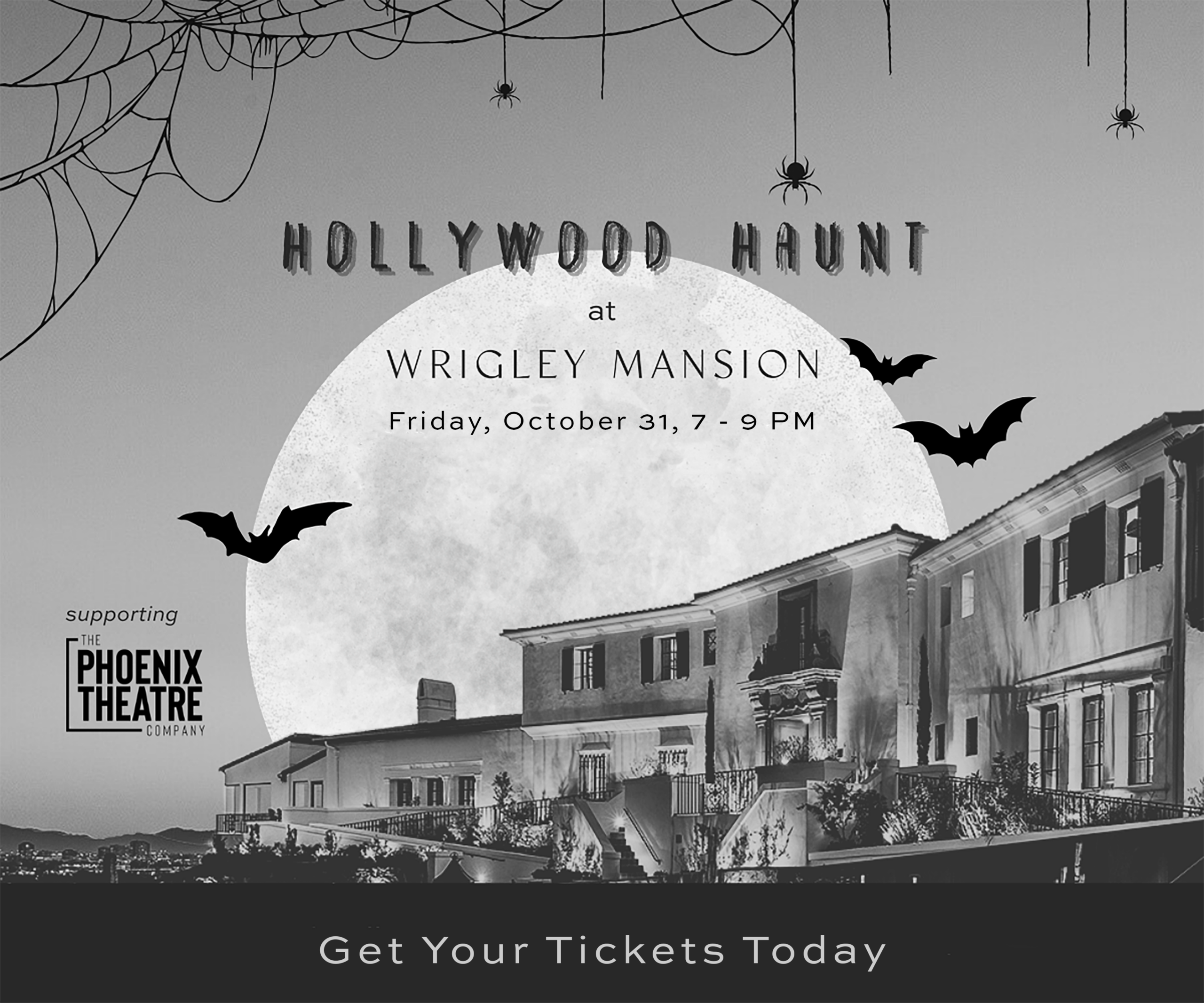 Join us for an exclusive Halloween costume party October 31 at the iconic Mansion. Immerse yourself in the sophistication of old Hollywood with the intrigue of the season. It’s an evening of glamour, mystery, and celebration – while benefiting The Phoenix Theatre Company.