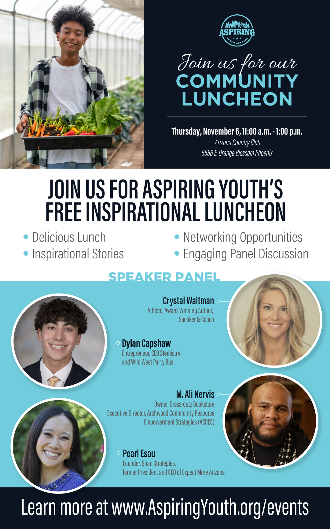 The luncheon serves as both a celebration and a call to action — inspiring guests to invest in AYA’s mission of providing entrepreneurship, leadership, and financial literacy education that builds confidence, breaks cycles of poverty, and strengthens Arizona’s economic future.