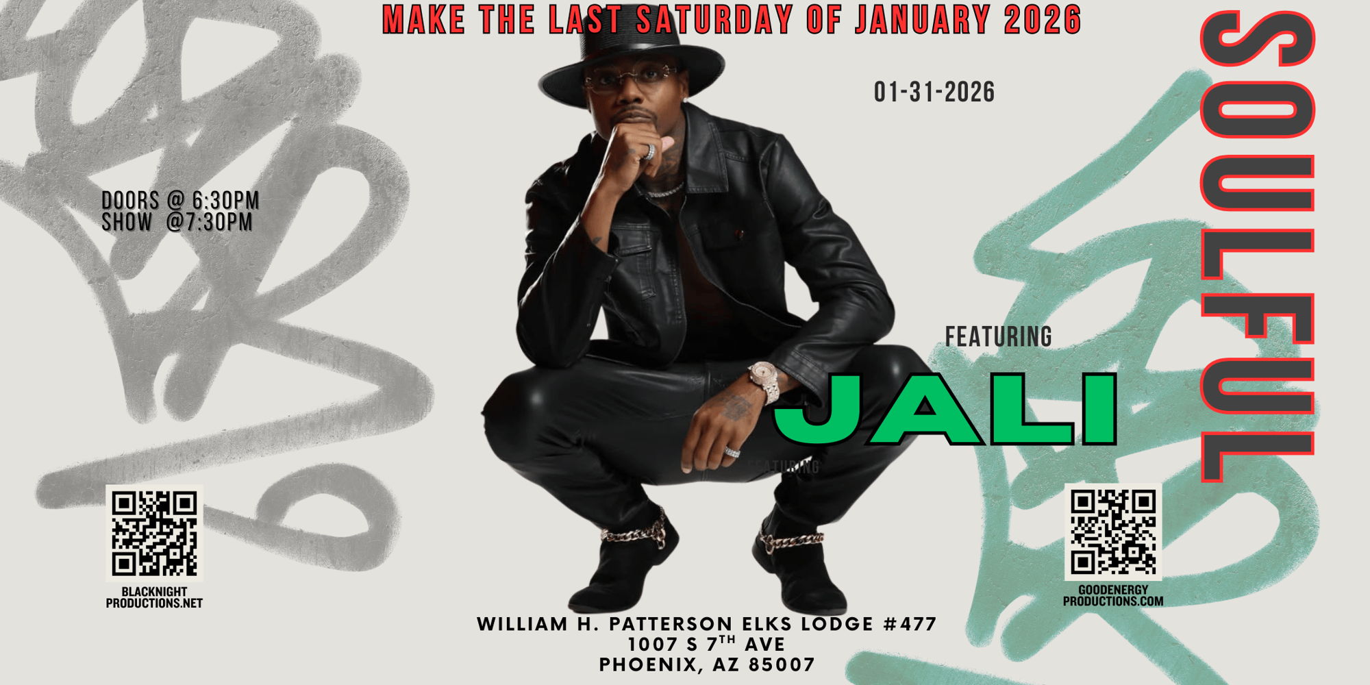 Make the last Saturday of every month “SOULFUL” with cold drinks, amazing scratch-made soul food, and a live performance by Southern Soul / R&B artist Jali the Gentleman! Doors open at 6:30 pm and the show starts at 7:30 pm.