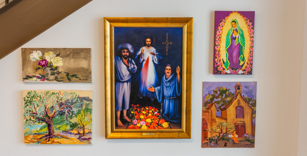 More than seven decades later, that simple line still echoes, this time across the walls of Ozanam Manor and De Paul Manor, transitional shelters for people experiencing homelessness at St. Vincent de Paul. What used to be bare hallways are now bursting with more than 400 of Vincent’s paintings — portraits, still lifes, vibrant slices of everyday life — and they’re doing more than just decorating. They’re bringing joy, dignity and healing to a community seeking just that.