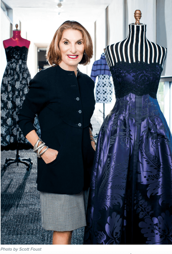 She remembers the first Geoffrey Beene creation she ever wore. “I honestly just loved how it looked on me,” she said. “I had had a baby, and it was roomy across the bosom and had a full skirt and jacket so it sort of covered me up and showed off my few assets. I just looked a whole lot better in that dress than I normally looked!”