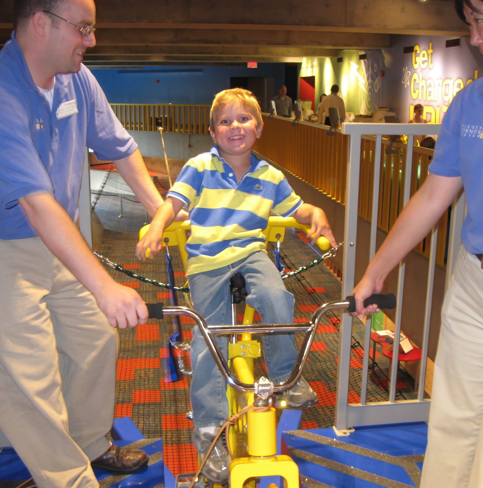 Among the fun, interactive displays was a bike rolling above them, balanced on a cable. “Chevy and I got Ardie up on it, and she was riding it back and forth on this wire,” Steve said. “We said, ‘We’ve got to have one of those in Arizona!’”