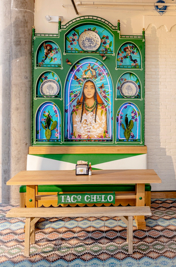 “Taco Chelo Tempe is a space where I’ve poured my heart and soul, aiming to evoke the same emotions as one of my paintings. Every single detail was designed or created by me, inspired by the vibrant colors of my youth in Mexico,” said Garcia, who has designed several other restaurants and has a gallery in downtown Phoenix.