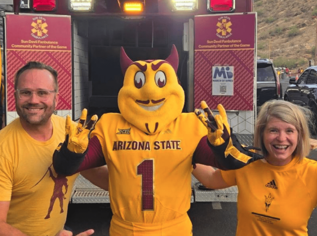 The family also loves to play. Outings often involve their pet project: the Fanbulance. It’s a decommissioned ambulance they’ve converted into a community resource vehicle — equal parts tailgating hub, ASU spirit spreader and neighborhood gathering spot.