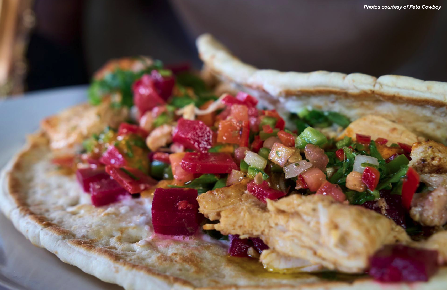 At Feta Cowboy, diners can build their own bowl, pita or burrito, or order signature menu items like a brisket kimchi bowl, chicken shawarma pita or spicy cauliflower burrito.