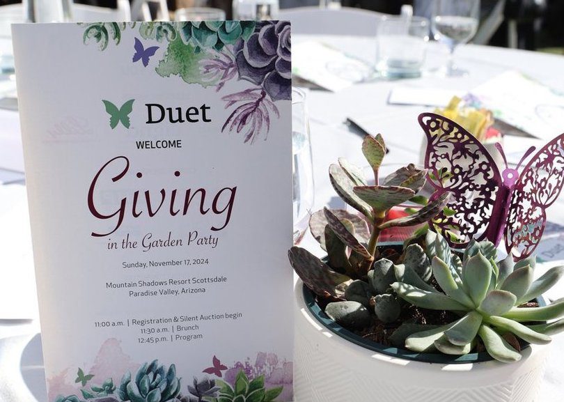 A memorable ‘Giving in the Garden Party’ fundraiser at the stunning Mountain Shadows Resort Scottsdale on November 17, 2024 succeeded in supporting Duet Partners in Health & Aging.