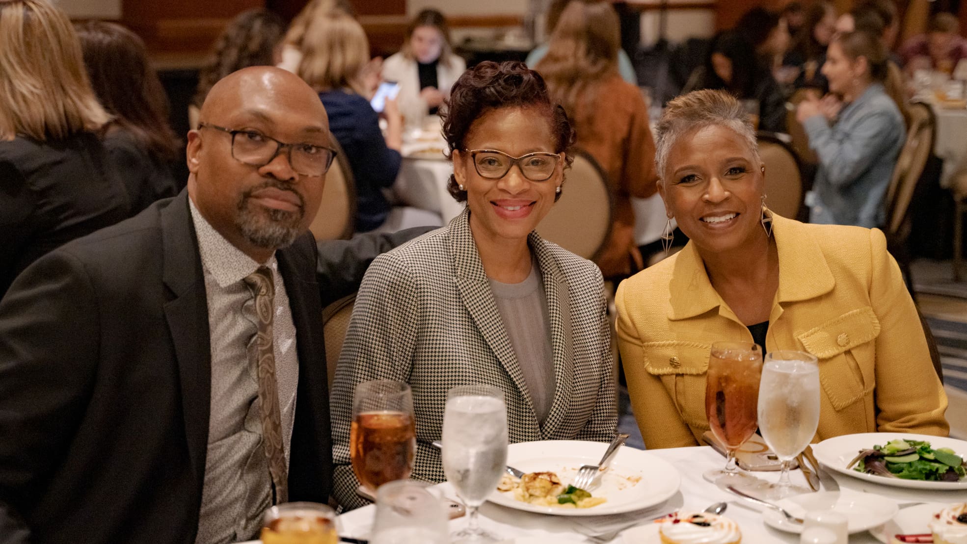 Notable Moments: The packed ballroom was filled with excitement to welcome Gayle King to an incredible list of journalists who have preceded her as the Cronkite Award recipient. Dean Battinto Batts welcomed everyone to the program and luncheon ceremony, which included highlights of the Cronkite student-led initiatives and journalism currently underway throughout the ASU community. Cronkite student Autriya Maneshni was given the honor of introducing Gayle King. King’s direct and sometimes off-the-cuff speech included the recognition of her two children in attendance, Kirby Bumpus and William Bumpus Jr.