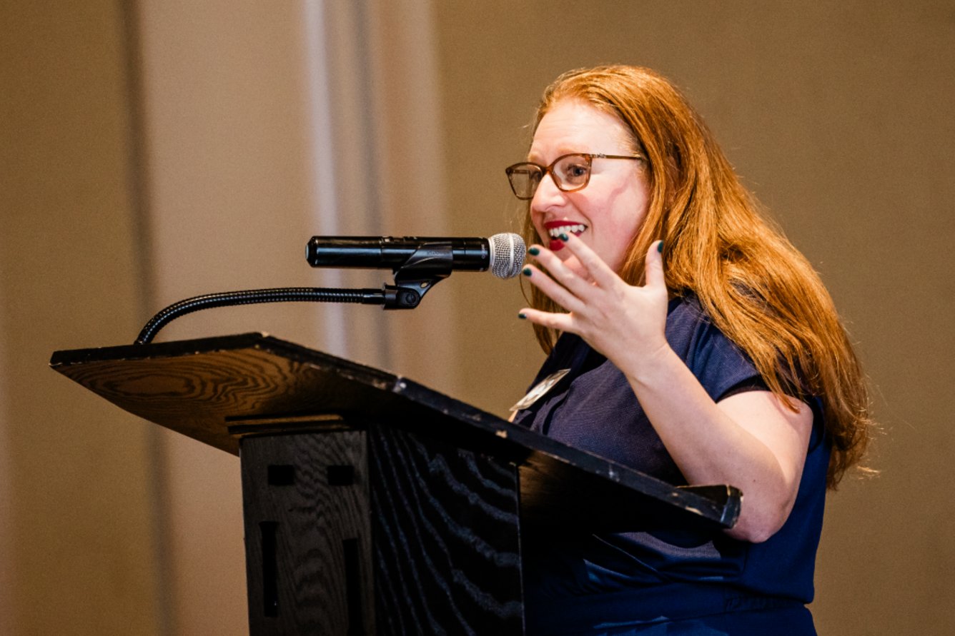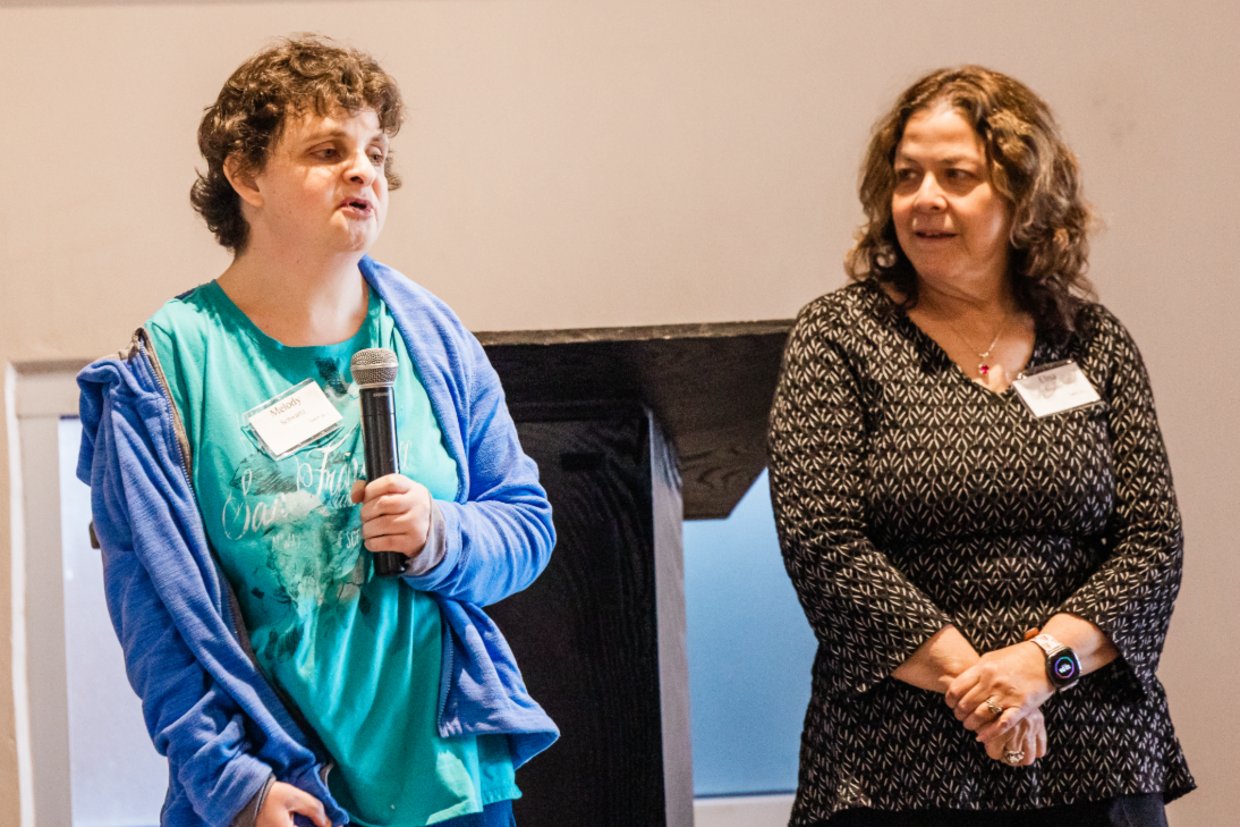The luncheon featured personal perspectives of individuals and families who have benefitted from Gesher’s support. Comedian Pamela Rae Schuller was the featured presenter, and she spoke about her experience as a Jewish comedian living with Tourette’s Syndrome.