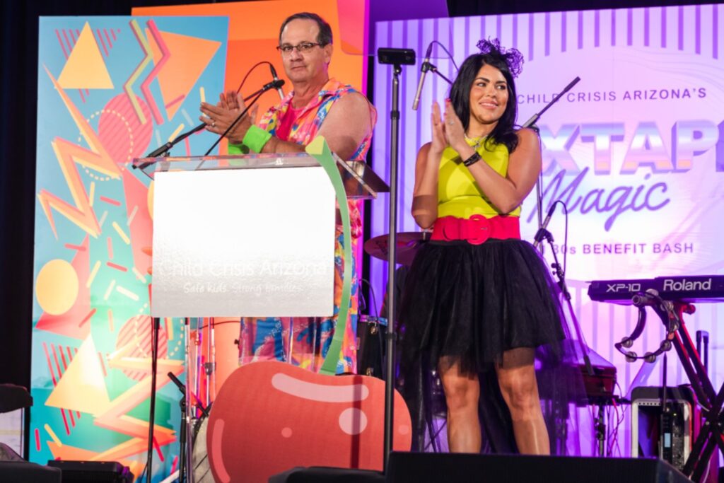 Child Crisis Arizona hosted its 49th annual fundraising gala at the Paradise Ballroom at the JW Marriott Camelback Inn Resort & Spa, where guests showed up in their best 80s outfits for the “Mixtape Magic” theme. The event highlighted the organization’s mission to uplift and protect vulnerable children in Arizona.
