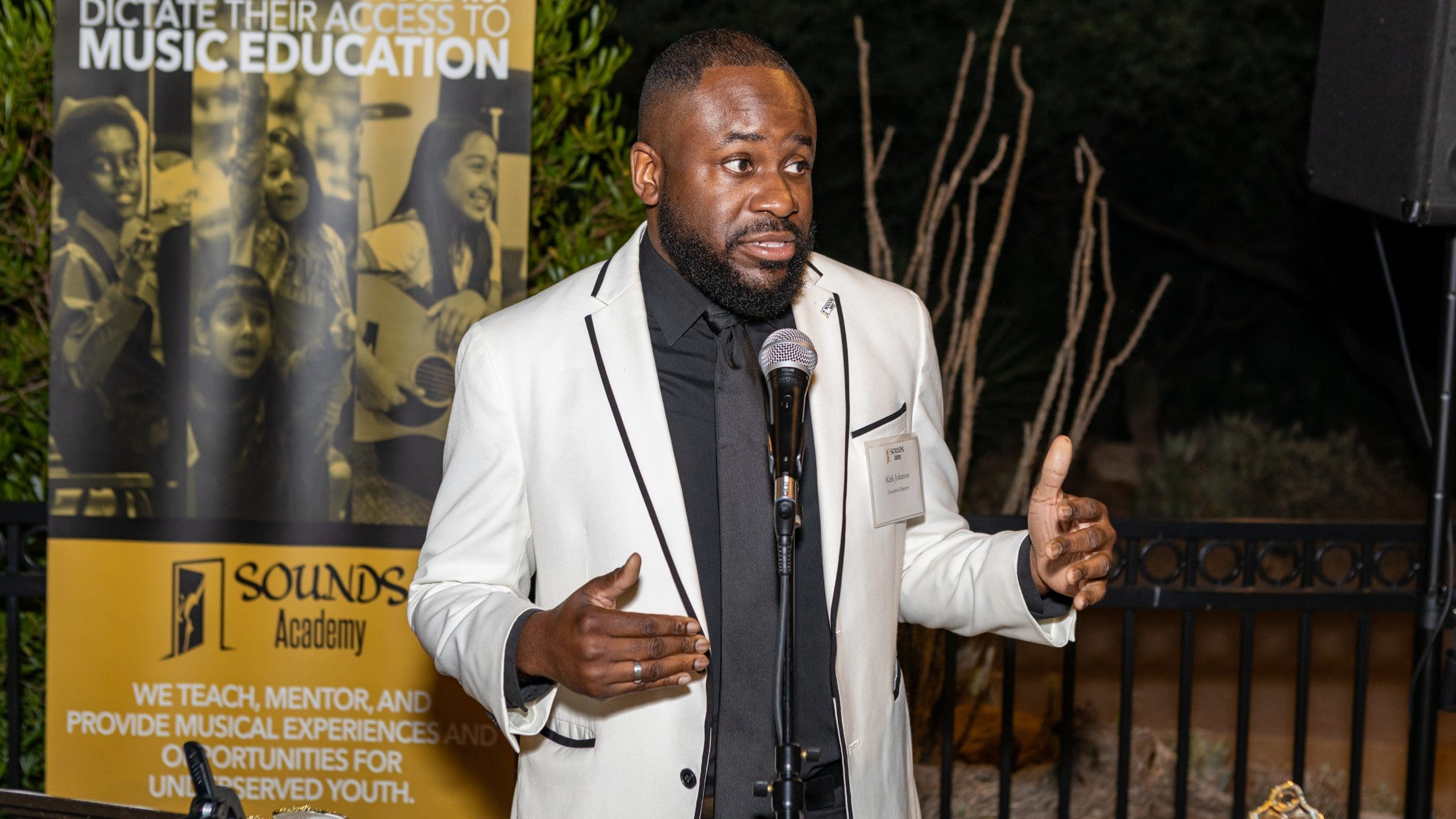 Notable Moments: In speakeasy fashion, the secret location was revealed by a golden envelope with a secret password. Guests were dressed in roaring 20’s-inspired fashion, and the music was also from the 20’s era, plus pop jazz. The main stage performer, Sarah Pineda captivated the speakeasy audience with a sophisticated classical violin piece. The keynote address was given by Aqueelah Worthen, a parent of three SOUNDS Academy students. Two of her children have been recently accepted into the prestigious Phoenix Youth Symphony.